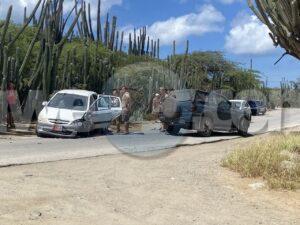 Diasabra mainta a drenta informe di un accidente cu hende herida na Paraguana, mesora a dirigi tanto polis como ambulans na e sitio. Na yegada di e patruya a bin compronde cu aki ta trata di un accidente unda cu e chauffeur di un Isuzu Amigo coriendo cu velocidad halto den e biradanan di Paraguana a bay dal frontal riba un Hyundai Getz di direccion contrario. Debi na e impacto un dama pasahero y un mucha pasahero den e Getz a resulta herida. Na yagada di e ambulansnan nan a atende ambos victima y a transporta nan pa hospital.j