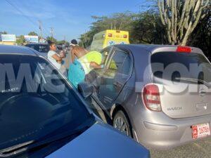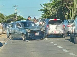 Diamars atardi a drenta informe di un accidente cu hende herida na e crusada dilanti Veterinario Noord, mesora a dirigi tanto polis como ambulans pa e sitio. Na yegada di patruya na e sitio a bin constata cu aki chauffeur di un Nissan March lo a sali dilanti un KIA Picanto bayendo pabao riba caminda di preferencia. Esaki a causa un accidente unda un persona lo a keda levemente herida. Ambulans a yega na e sitio y a atende cu e herido.