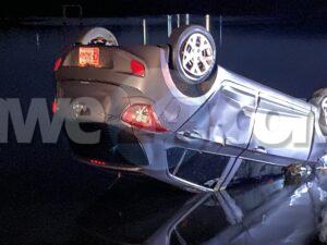 Diahuebs madruga durante patruya polis a bin topa cu un auto gebolter den e saliña di Franse Pas, mesora nan a para baha bay atende. A bin resulta cu un tiki velocidad dimas y e birada cu caminda muha nan a slip kentel y bolter den e saliña. Afortunadamente ningun hende a resulta herida. E personanan mes a yama takelwagen pa bin saca e Hyundai i10 for di e saliña,