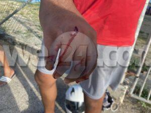 Diahuebs atardi a drenta informe di un accidente cu hende herida na Sabana Blanco, mesora a dirigi tanto polis como ambulans na e sitio. Na yegada di e patruya a bin compronde cu aki ta trata di un accidente entre un Suzuki Swift maneha pa un hobencita cu a bay purba pasa net prome cu e motocicleta y nan a dal den otro unda e motociclista a resulta levemente herida na su man y rudia. Na yegada di e ambulans nan a atende e motociclista na e sitio mes.