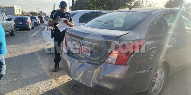 Diahuebs atardi a drenta informe di un accidente panort di e rotonde banda di Acero na Tanki Leendert, mesora a dirigi un patruya na e sitio. Na yegada di e patruya a bin compronde cu aki ta trata di un accidente unda cu e chauffeur di un Chevrolet no a regula su velocidad ni a mantene distancia a bay dal tras di un Nissan Versa bayendo zuid. E impacto tabata basta fuerte pero asina mes ningun hende a resulta herida.