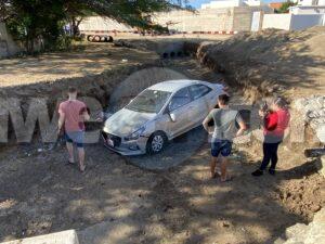 Dialuna mainta durante patruya polianan pasando den Bubali a nota un auto den e rooi y a baha check kiko a pasa. A bin resulta cu aki ta trata di un chauffeur y pasahero hulandes europeo cu a caba di yega Aruba ayeratardi bayendo direccion pariba a bay kita pa un cacho y e chauffer a perde control y e auto a bay cay den e rooi. Afortunadamente ningun hende a resulta herida.