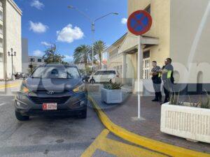 Dialuna mainta durante patruya e oficialnan di Tourism Oriented Police (T.O.P.), a bin topa cu un auto staciona na un sitio prohibi y den e direccion prohibi. Nan a intenta di contacta e doño pero despues cu no a logra a yama un takelwagen pa bin hala esaki. E takelwagen a tarda un rato pa motibo di e trafico ya cu net na e momentonan ey e caminda dilanti bestuurskantoor tabata sera pa e entrenamento militar pa e dia di mayan apertura di e aña parlamentario y tur e trafico a ser desvia via Wilhelminastraat. Na yegada di e takelwagen diripiente e dama chauffeur a aparece, berdad takelwagen no a bay cu e auto pero polis a duna e dama un tremendo boet pa e bay paga na Ministerio Publico.