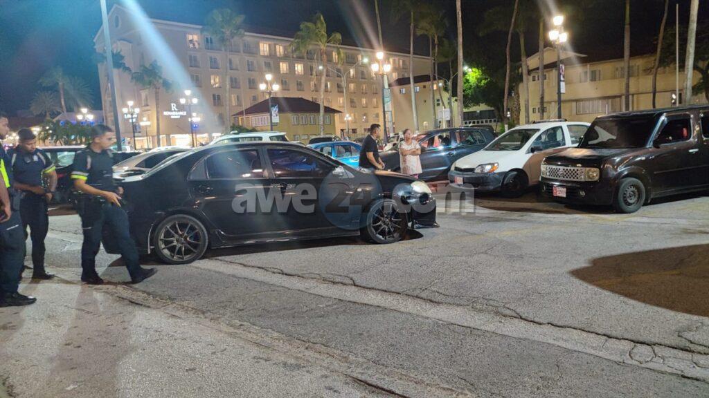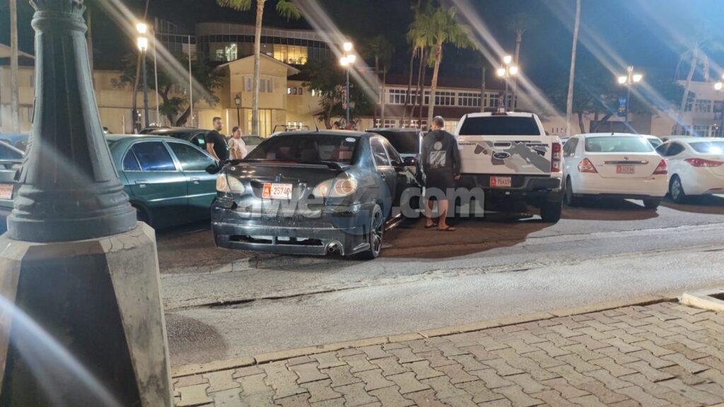 Diaranson anochi a drenta informe di un accidente den e parkinglot dilanti parlamento, mesora a dirigi un patruya na e sitio. Na yegada di e patruya a bin compronde cu aki ta trata di un accidente unda cu e chauffeur si un Nissan Cube a yega pa parkeer pero mirando na e bandanan no a ripara e auto staciona su dilanti y a pusha esaki patras. Como no por a haya e doño di e auto polis a laga un nota atras p’e doño.
