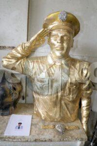 E busto di e Polis Tino Ruiz ta un obra di artepublico cu ta representa e forsa y alabes e fragilidaddi homber y muhenan cu ta sirbi nos Pais