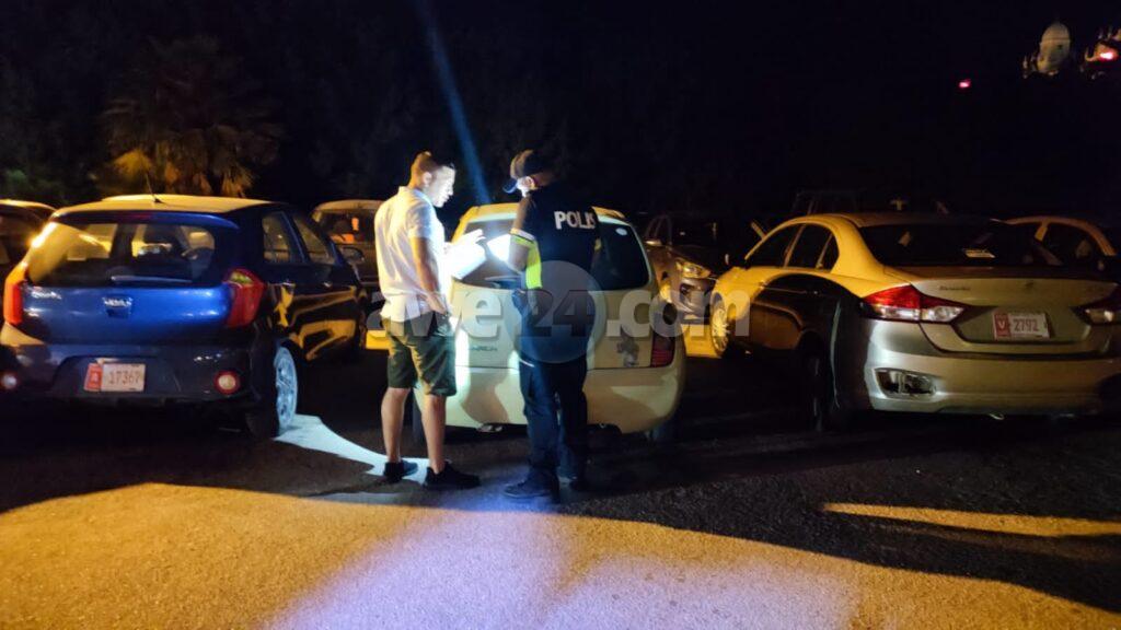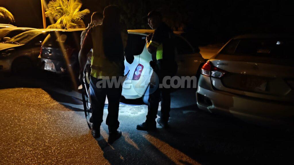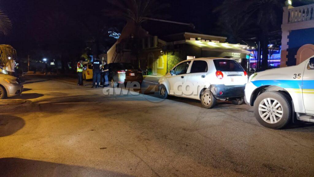 Dialuna marduga a drenta informe di un accidente den parkinglot di The Village na Palm Beach, mesora a dirigi patruya na e sitio. Na yegada di patruya na e sitio a bin compronde cu aki chauffeur di un Nissan March lo a reverse y dal den otro auto para. Debi cu e chauffeur di e March no tabata tini seguro a solicita presencia di polis di trafico. Na yegada di e patruya a constata cu e chauffeur di e March ta bou influencia y a detene. Vehiculo di transporte a bini na e sitio y a transporta e detenido pa warda di polis.