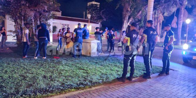 Diasabra anochi a drenta informe di un pelea banda di cas di gobernador. Mesora a dirigi varios patruya na e sitio. Na yegada di e patruya nan a yega banda di oficina di gobernador y aki a topa un grupo di hoben sinta. Polis a tuma datos di nan y a bin compronde cu lo no tabata tin niun pelea y cu tabata lift nan ta warda. Polis a bisa tur hoben bai cas pa asina evita mas confusion.
