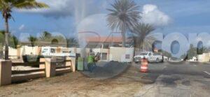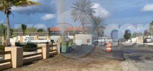 Diasabra mainta un contratista cobando banda di caminda na Malmokweg a dal riba un tubo di awa y esaki mesora a cuminsa spuit manera un fontein grandi. Mesora a avisa W.E.B. pa asina nan bini soluciona e problema aki.