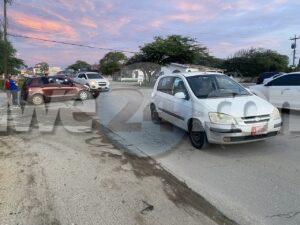 Diaranson atardi a drenta informe di un accidente na Tanki Leendert, mesora a dirigi un patruya na e sitio. Na yegada di e patruya a bin compronde cu aki ta trata di un accidente unda un chauffeur sin rijbewijs a bay subi caminda sin a duna preferencia y a bay dal un auto pasando. Afortunadamente ningun hende a resulta herida.