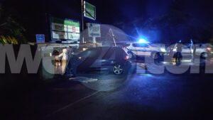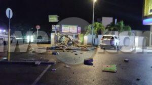 Diasabra madruga a drenta informe di un accidente na Ponton, mesora a dirigi un patruya na e sitio. Na yegada di e patruya a bin compronde cu aki ta trata di un Volkswagen bayendo direccion Oranjestad y a baha for di caminda na man robes bay dal un palo di lus kibra sigui bay dal muraya cu kashi coriente kibra. Afortunadamente ningun hende a resulta herida pero polis a detene e chauffeur pa hib’e test pa wak si ta bao influencia.