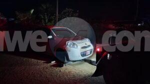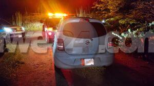 Diasabra madruga durante cu polisnan tabata patruyando banda di un club nocturno na Palm Beach a nota e sospechoso cu nan tabata sigui un rato prome den e Nissan March blanco, mesora nan a bay tras di dje y a start un persecucion. E persecucion aki a pasa den Monserat, Semeleerstraat, Turibana y a bay termina na Alto Vista unda e sospechoso a laga e auto atras y core drenta mondi na pia. Polisnan a organisa y a start un buskeda den e mondi mientras a confisca e vehiculo. Den un otro informe ta sigui mas informacion.