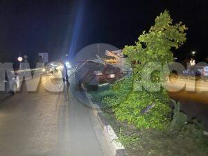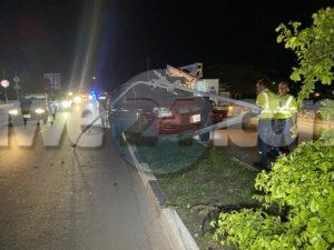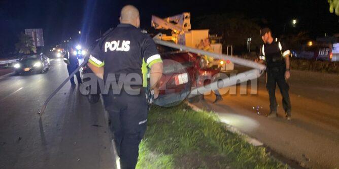 Diadomingo anochi a drenta informe di un accidente pariba di e rotonde di Pos Chikito, mesora a dirigi un patruya na e sitio. Na yegada di e patruya a bin compronde cu aki ta trata di un accidente unda cu un Kia Sportage bahando di pariba a subi e isleta dal borchi trafico pasa riba dje y bay dal riba palo di lus y kibra esaki. Afortunadamente ningun hende a resulta herida.