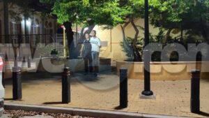 Dialuna mey anochi a drenta informe di un caso di hinkamento na Windstraat, mesora a dirigi tanto polis como ambulans na e sitio. Na yegada di e patruya a bin compronde cu e homber lo a hinka e dama cu un cuchiu y e homber mes a core bay lagando e victima ta sangra. Na yegada di e ambulans nan a atende e dama y a transporte pa hospital. Polisnan cu a ricibi e descripcion di e sospechoso a sali en busca di dje. Na altura di Pro Catedral San Francisco a bin logra captura e sospechoso y a detene. E investigadornan technico y forensyco di polis tambe a presenta na e sitio pa e investigacion.