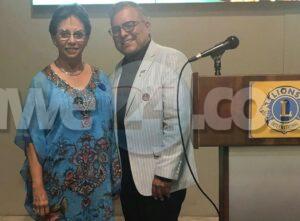 Recientemente durante e celebracion di e di 5 Anniversario di Aruba One Happy Island Lions Club ( AOHIL). Sra Lilly Prince, Presidente di Konigin Wilhelmina Kankerfonds, a ricibi e medaya aki for di man di Presidente di AOHIL, Lion Eugene Dubero.