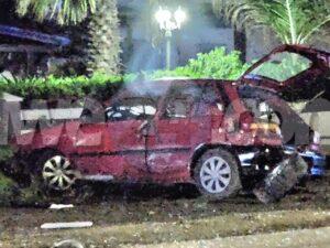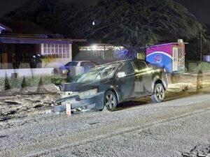Na yegada di patruya ta constata cu e chofer di e Toyota Starlet a wordo transporta door di conocirnan pa hospital.