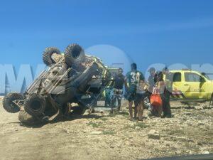 Diaranson merdia a drenta informe di cu tin un UTV a bolter pabao di Bushiribana y tin un hoben di apenas 15 aña a resulta seriamente herida, mesora a dirigi tanto polis como ambulans na e sitio. Na yegada di e patruya a bin compronde cu durante e offroad tour e dama Colombiana no a sa di maneha e UTV correctamente y. Bolter cu esaki. Un hoben tambe di Colombia sinta patras a resulta herida cu sla na cabes y no ta corda mucho bon kiko a pasa. Na yegada di e ambulans nan a atende e hoben y a transporte pa hospital. E otronan a djies ricibi algun rasca di menos seriedad y no tabata desea atencion di ambulans.