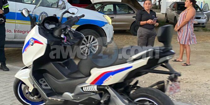 Diaranzon atardi a drenta informe di un accidente entre un auto y un scooter na Pos Chikito, mesora a dirigi polis di trafico na e sitio. Na yegada di e patruya na e sitio a bin compronde cu aki un auto a alcansa un scooter y cu un di e chauffeurnan no tabata den poder di un rijbewijs. Polis a tuma datos di e accidente aki pa por traha un rapport di esaki.