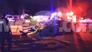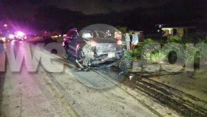 Diasabra anochi a drenta informe di un accidente cu hende herida na Hooiberg, mesora a dirigi tanto polis como ambulans na e sitio. Na yegada di e patruya a bin compronde cu aki ta trata di un accidente frontal unda e chauffeur di un auto deportivo a a bay na banda robes di caminda y a bay dal frontal riba un s.u.v. Debi na e fuerte impacto e dama chauffeur den e s.u.v. a ricibi un bolonbonchi pero no tabata desea atencion di ambulans mientras e chauffeur di e auto deportivo si a resulta mas herida y a ser atendi pa e personal di ambulans y hiba hospital.