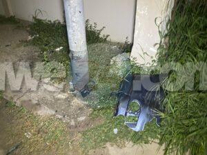 Diadomingo madruga a drenta informe di un accidente hit & run na Prof. Lorentzstraat, mesora a dirigi un patruya na e sitio. Na yegada di e patruya por a compronde for di testigonan cu nan a te de un sonido fuerte y ora a sali wak a nota un auto chikito color grijs a dal e palo di lus y bandona e sitio direccion pariba. Algun parti di e auto a keda atras y ta via e partinan cu a keda a logra saca afor cu aki ta trata di un Suzuki Swift.