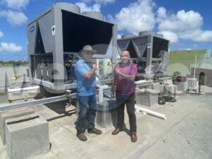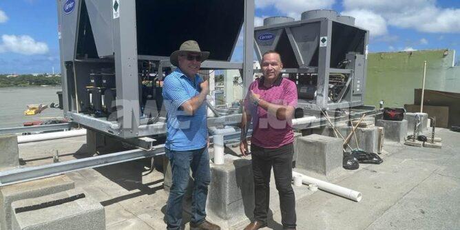 Aruba unda cu e dos airco grandi (chiller) a wordo instala riba e dak di e edificio. Na luna di