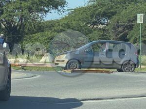 Diabierna mainta durante cu un chauffeur tabata transportando un stellage den e baki di un pick-up sin mara esaki birando na e rotonde panort di Acero na Tanki Leendert e stellage a sali cay. Afortunadamente no tabata tin auto pega su tras. Esaki a causa un stagnacion chikito di e trafico pa asina e chauffeur por a recoge e stellage bek.