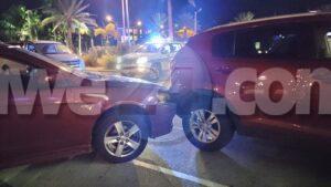 Diadomingo madruga a drenta informe di un accidente den e parkinglot di Alhambra Casino, mesora a dirigi un patruya na e sitio. Na yegada di e patruya a bin compronde cu un chauffeur burachi no a logra maniobra su auto bon y a bay dal un otro auto staciona. Logicamente polis a ripara cu e chauffeur ta burachi y a detene. E daño tabata minimal.