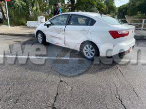 Diamars mainta a drenta informe di un accidente hit and run na Lagoen. Mesora a dirigi un patruya na e sitio. Na yegada di e patruya a bin compronde cu un Mitsubishi lancer cora cu tabata core cu e number A-73695 biniendo di Caya Ernesto Harms lo no a duna preferencia na un KIA blanco cu tabata biniendo di Zoutman straat y nan a accidenta. E auto blanco a draai 180 grado y a para riba e brug. E auto cora a core bai pero un pida di su bumper a keda atras hunto cu e number di auto. Afortunadamente ningun persona a resulta herida. E daño na e auto tabata grandi.