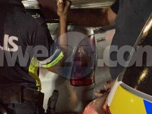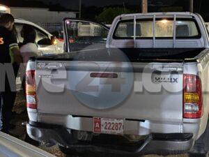 Diasabra madruga mientras polis tabata tira bista mientras e bishitantenan di un nightclub na Palm Beach bandona e sitio polis ta nota un chauffeur reverse y a wak’e manera e lo a dal tras di un pick-up staciona y a core bay. Polis mesora a bay su tras y a par’e no mucho leu y a bolbe cun’e na e sitio ya cu ela dal e pick-up. Ora e chauffeur di e pick-up a regresa a haya polis rond di su pick-up. Polis a bis’e cual ta e auto cu a dal e y kier a sigui core bay. A bin resulta cu ambos doño conose otro y nan a keda di regla esaki nan mes.