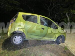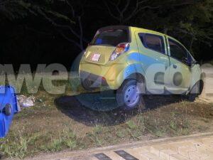 Dialuna madruga polis pasando riba L.G. Smith blvd. a bin topa cu un auto cu a caba di accidenta riba Linear Park, mesora a baha atende e accidente aki. Locual a sosode ta cu e dama chauffeur di e Chevrolet Spark bayendo pariba a perde control subi e acera na banda drechi bay dal riba un bari di sushi banda di caminda y e auto a keda pega riba e bloki beton cu ta wanta e bari. Polis a hala atencion di e dama chauffeur cu no a yama meld e accidente aki pero ai a yama un takelwagen pa bin busca e auto. Pues por poco e accidente aki lo a bira un otro hit & run. Afortunadamente ningun hende a resulta herida.