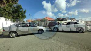 Diasabra a atardi a drenta informe di un accidente na e crusada Weststraat cu Prof. Lorentzstraat, mesora a dirigi un patruya na e sitio. Na yegada di e patruya a bin compronde cu aki ta trata di un accidente unda cu e chauffeur di e Toyota cu tabata bini for di Weststraat no a para pa duna preferencia na e Mazda biniendo for di pabao y esaki a dal e Toyota bir’e 90 grado. Aunke e impacto tabata fuerte afortunadamente ningun hende a resulta herida.