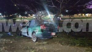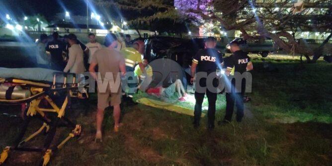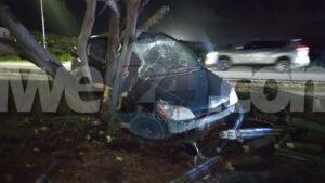 Diadomingo madruga a drenta informe di un accidente cu hende herida riba Sasakiweg pariba di Tropicana, mesora a dirigi tanto polis como ambulans na e sitio. Na yegada di e patruya a bin compronde cu aki ta trata di un accidente unda cu durante pustamento unda cu na un momento dado e Honda Integra a ser sera pone perde control bay dal un Toyota Tercel berde mande bay dal un mata di kwihi y e Honda a sigui bay dal riba un otro mata di kwihi y bolter. Debi na e impacto aki 3 hende a resulta herida un den e Tercel y 2 den e Honda. Na yegada di e ambulans nan a atende e victimanan y transporta nan pa hospital.