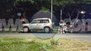 Diabierna madruga a drenta informe di un accidente na e rotonde banda di Guardian Group, mesora a dirigi tanto polis como ambulans na e sitio. Na yegada di e patruya a bin compronde cu aki ta trata di un accidente unda cu e chauffeur di e Nissan Cube a bay dal tras di un s.u.v. Debi na e impacto un dama den e Cube a resulta herida, na yegada di e ambulans nan a atende e dama y a transporte pa hospital.