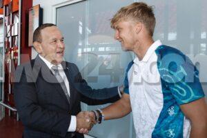 ORANJESTAD: Diahuebs atardi mandatario di Deporte a ricibi atleta Malik Hoveling na su yega na Aruba. Malik a gana medaya di oro den Weganan Centro Americano y Del Caribe di Mar y Playa na Santa Marta, Colombia den e disciplina di sailing.