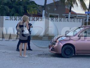 Diasabra mainta a drenta informe di un accidente banda di Vegetarian Delight na Sero Blanco, mesora a dirigi un patruya na e sitio. Na yegada di e patruya a bin compronde cu aki ta trata di un accidente unda un dama turista coriendo cu un Nissan March di huur no a duna preferencia na trafico di man drechi riba e crusada igual y a bay dal un truck for di man drechi