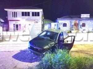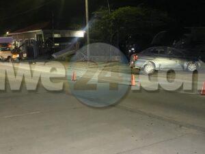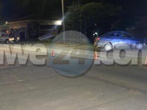 Diasabra madruga un patruya bayendo warda a topa cu un accidente pazuid di Santa Cruz Bar & Restaurant, mesora a baha atende e accidente aki. A bin resulta cu un Toyota Yaris model bieu bayendo nort na banda robez di caminda a pone un takelwagen subi acera pa evita impacto frontal e tekelwagen a desvia y a subi acera pero asina mes e Yaris a dal e deb banda manda e takelwagen dal un borchi grandi y kibra esaki bente abao. Afortunadamente ningun hende a resulta herida. Polis a nota cu e chauffeur di e Yaris ta mustra di ta bao influencia ora cu polis a pone supla esaki a indica cu e ta bao influencia, Eynan mesora polis a detene y a transporte pa warda di polis.