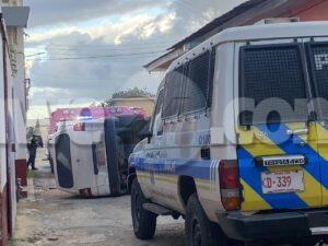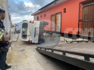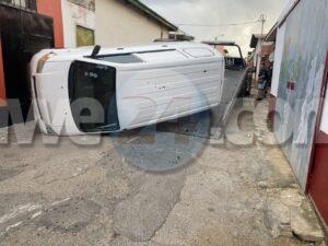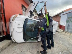 Diadomingo mainta a drenta informe di un accidente cu hende herida den Jan Steenstraat, mesora a dirigi tanto polis como ambulans na e sitio. Na yegada di e patruya a bin compronde cu aki ta trata di un Suzuki APV bayendo pabao a dal riba un stupi na man drechi y e bay bolter den banda. Na e momentonan ey e chauffeur no tabata na e sitio pero despues a regresa na e sitio cu hopi dolor na su man. Na yegada di e ambulans nan a atende y a transporte pa hospital. Como cu e vehiculo no tin su papelnan na ordo polis confisca esaki.