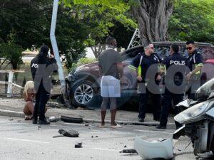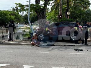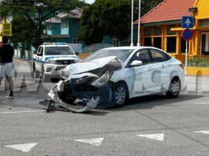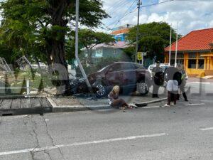 Diasabra merdia a drenta informe di un accidente cu hende levemente herida, mesora a dirigi tanto polis como ambulans na e sitio. Na yegada di e patruya a bin compronde cu aki ta trata di un accidente pa falta di preferencia unda e Toyota RAv despues di cu e auto a dal e a manda esaki bay dal riba un palo di lus. Debi na e fuerte impactonan e turistanan levemente herida no tabata desea atencion di ambulans y polis a cancela esaki.