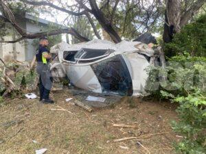 Dialuna mainta a drenta informe di cu tin un auto cu a bolter pabao di e Arucamba Snack Truck na Tanki Flip, mesora a dirigi un patruya na e sitio. Na yegada di e patruya a tuma nota cu e motor di e auto ta frieuw indicando cu esaki lo a pasa mas tempran den madruga. Buscando mas informascion a logra saca afor cu esaki a sosode banda di 3:20 di madruga unda e chauffeur a dal e acera subi drenta un pida mondi pasa banda di un transformerhuis y kentel den banda bay di un mata di kwihi. E chauffeur tabata para riba su pia pafor cu algun herida. A pidi ambulans pa atende e victima, pero su heridanan no tabata necesario pa e bay hospital. Polis a hiba e chauffeur su cas. E chauffeur a fia e auto aki for di un amigo y a accidenta cun’e lagando esaki na werki.