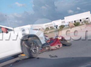 Diamars atardi a drenta informe di un accidente na e rotonde di Sasaki pa bay hospital, mesora a dirigi un patruya na e sitio. Na yegada di e patruya a bin compronde cu aki ta trata di un accidente unda cu un Lexus suv no a duna preferencia y a bay dal tras di e brommer y subi riba dje. Afortunadamente e motociclista no a resulta herida pero si a keda spanta. E brommer si a keda destrui.