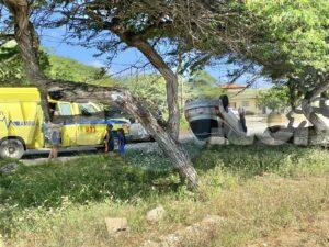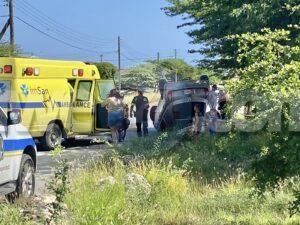 Diabierna merdia a drenta informe di un accidente cu hende herida banda di Palmita na Pos Chikito, mesora a dirigi tanto polis como ambulans na e sitio. Na yegada di e patruya a bin compronde cu aki ta trata di un Nissan March coriendo cu velocidad halto a bay haci un maniobra y a perde control y bolter. Na yegada di e ambulans a atende esnan den e auto cu a resulta mas spanta cu herida y no tabata necesario pa hibanan hospital.