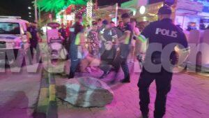 Diadomingo madruga a drenta informe di cu lo tin un homber pata pata sinta riba vloer banda di logo di Aruba na Palm Beach, mesora a dirigi un patruya na e sitio. Na yegada di e patruya nan a purba yud’e cu poco awa pa e lanta pero ni esey a yuda y a pidi e vehiculo di transporte. Pa su mesun seguridad y di otronan a detene y dun’e un cuarto gratis pa e recupera.