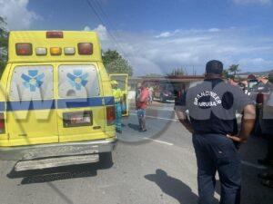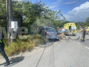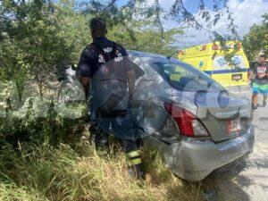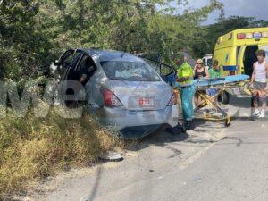 Diaranson merdia a drenta informe di un accidente cu hende herida na crusada di Sero Pita, mesora a dirigi tanto polis como ambulans na e sitio. Na yegada di e patruya a bin compronde cu aki ta trata di un accidente unda cu un famia turista biniendo for di Ayo den un Nissan Versa no a para pa duna preferencia na e Honda Fit biniendo for di Piedra Plat y nan a dal den otro y ambos auto a bay para te den mondi. Den e impacto aki den ambos auto tabata tin hende herida, di e 5 personanan herida 3 di nan a ser transporta pa hospital.