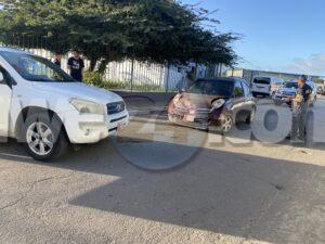 Diahuebs atardi a drenta informe di un accidente cu hende herida na e crusada Apollostraat cu Weststraat, mesora a dirigi tanto polis como ambulans na e sitio. Na yegada di e patruya a bin compronde cu aki ta trata di un accidente unda un Toyota Rav biniendo den Apollostraat a sali dilanti un Nissan March biniendo for di panort y tabata ser maneha pa un chauffeur bao influencia. Polis a pone e chauffeur di e Nissan March supla y esaki a resulta malo pa e chauffeur y polis a detene. Na yegada di e ambulans nan a atende e victima y a transporte pa hospital.