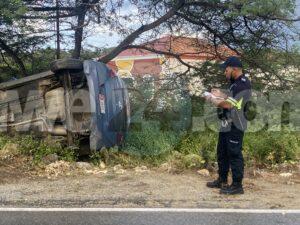 Diasabra mainta tempran a drenta informe di un accidente na Sero Alejandro, mesora a dirigi un patruya na e sitio. Na yegada di e patruya a bin compronde cu aki ta trata di un accidente unda cu un dama manehando un Hyundai Eon V3892 diripiente e wiel a los completamente for di e auto y e dama chauffeur a perde control y bolter. Afortunadamente ningun hende a resulta herida.