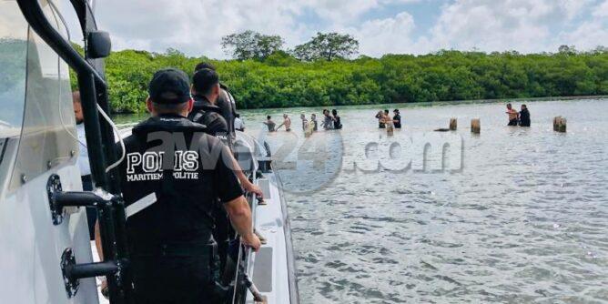 A cuminsa coordina conhuntamente cu helicopter di polis, coleganan di kustwacht, coleganan di Guarda Nos Costa, radarkamer y coleganan di diferente districto na Santo Largo. Mesora cu e prome 2 coleganan a drenta e mangelnan nan a pidi refuerso pasobra a bin encontra mas cu 10 ilegal scondi den e mangelnan. Poco poco helicopter a transporta mas colega di KPA y Kustwacht pa yuda y asina bin pone man ariba en total 14 ilegal.