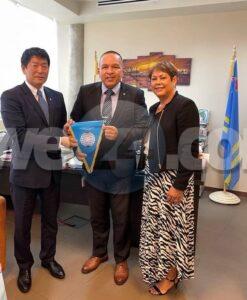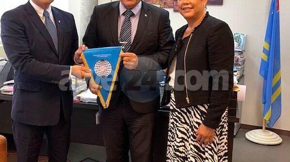 ORANJESTAD: Recientemente, den un esfera amenoMinister Endy Croes a reuni cu Presidente di FederacionInternacional di Gymnastiek, Sr. Morinari Watanabe kendetabata di bisita na Aruba. Presente na e encuentro tabataPresidente di Federacion di Gymnasia Aruba, sra. Milly Bagheri – van Trigt. Durante e reunion nan a trece diferenteideanan inspirativo pa e deporte aki. E tabata un bon reunion.