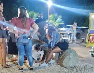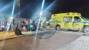 Diasabra madruga a drenta informe di cu tabata tin un turista pata pata burachi benta den e parkinglot banda di e hotzone na Palm Beach, mesora a dirigi tanto polis como ambulans na e sitio. Na yegada di e patruya a bin compronde cu ta nos damanan Arubiano a wak e y a brind’e ayudo, mesora a pidi ambulans cu a presenta manera un jet na e sitio y a yuda e turista. Manera e turista a bin bij ela gradici nos damanan Arubiano cu a tuma tempo pa bati alarma y yude. Ambulans a haya cu ta necesario pa hibe hospital y a haci esey.