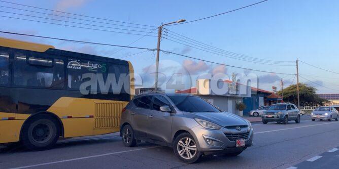 Diabierna mainta a drenta informe di un accidente pariba di Pacifico Bar & Restaurant na Pastoor Hendrickstraat, mesora a dirigi un patruya na e sitio. Na yegada di e patruya a bin compronde cu aki ta trata di un accidente unda cu e chauffeur di e Hyundai Tucson a bay reverse y a bay dal riba e bus di Arubus pasando su tras siguiendo su caminda. Afortunadamente ningun hende a resulta herida.