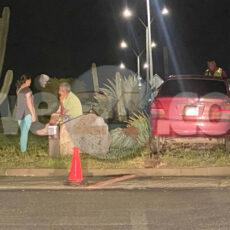Diasabra atardi a drenta informe di un accidente unda un auto lo a drenta un lugar na L.G. Smith Boulevard. Mesora a dirigi tanto polis como ambulans na e sitio. Na yegada di e patruya a bin compronde cu un chauffeur di un Honda blauw cu lo no tin rijbewijs lo a primi trot enbes di brake y a bai dilanti, kibra e vetrina y a drenta e beauty salon bai ful te paden. Na yegada di e ambulans nan a atende e dos victimanan cu a resulta herida.