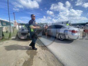 Diabierna atardi a drenta informe di un accidente cu hende herida dilanti Japoto Garage na Solito, mesora a dirigi tanto polis como ambulans na e sitio. Na yegada di e patruya a bin compronde cu aki ta trata di un accidente unda cu un Nissan Cube a sali for di e garage sina a duna preferencia na e Chevrolet Cavalier cu tabata biniendo pariba. Debi na e fuerte impacto tin hende cu a resulta herida. Na yegada di e ambulans nan a atende e victimanan cu a resulta levemente herida.